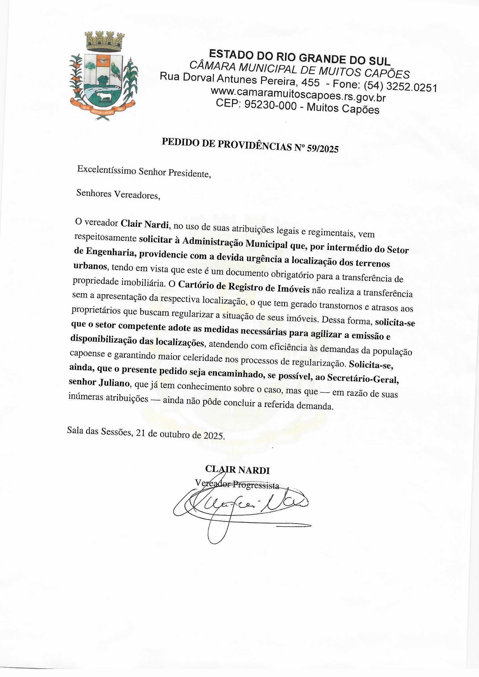 Solicitação: PEDIDO DE PROVIDENCIA N° 59/2025 Conteúdo: