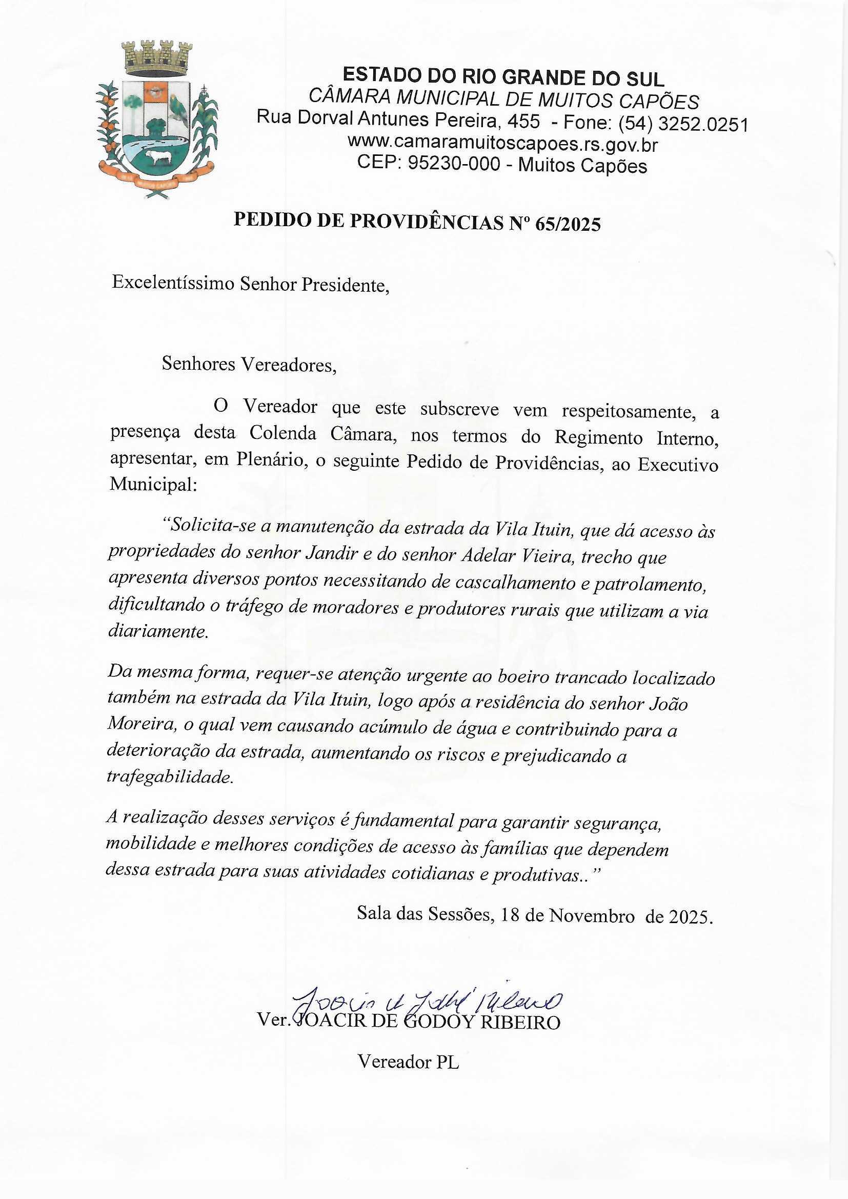Solicitação: PEDIDO DE PROVIDENCIA N° 65/2025 Conteúdo: