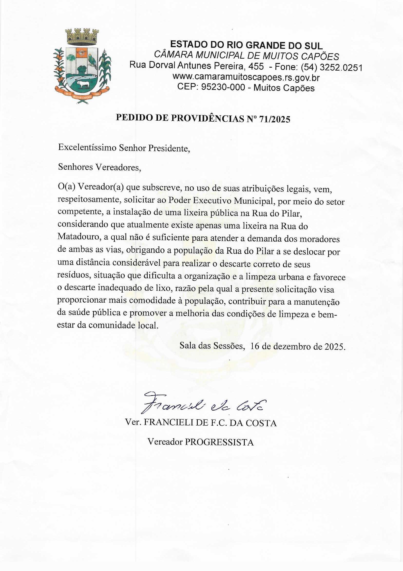 Solicitação: PEDIDO DE PROVIDENCIA N° 71/2025 Conteúdo: