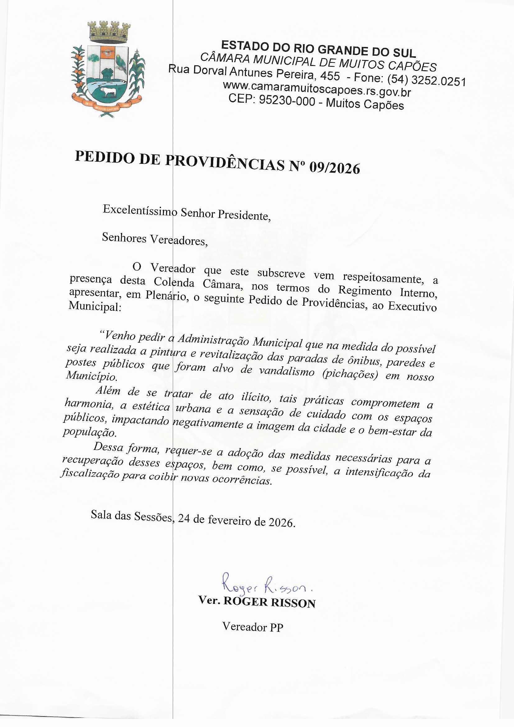 Solicitação: PEDIDO DE PROVIDENCIA N° 09/2026 Conteúdo: