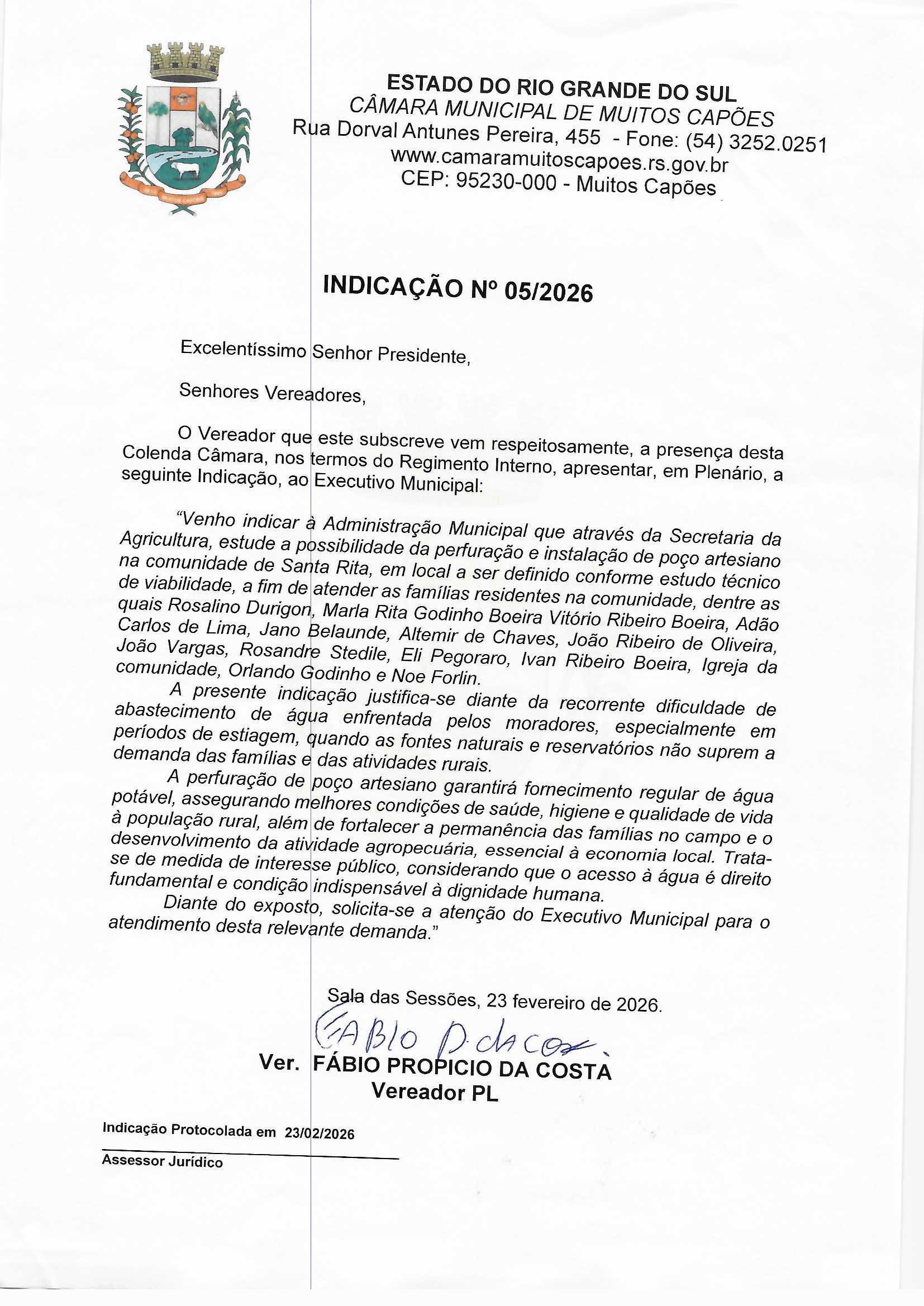 Solicitação: INDICAÇÃO N° 05/2026 Conteúdo:
