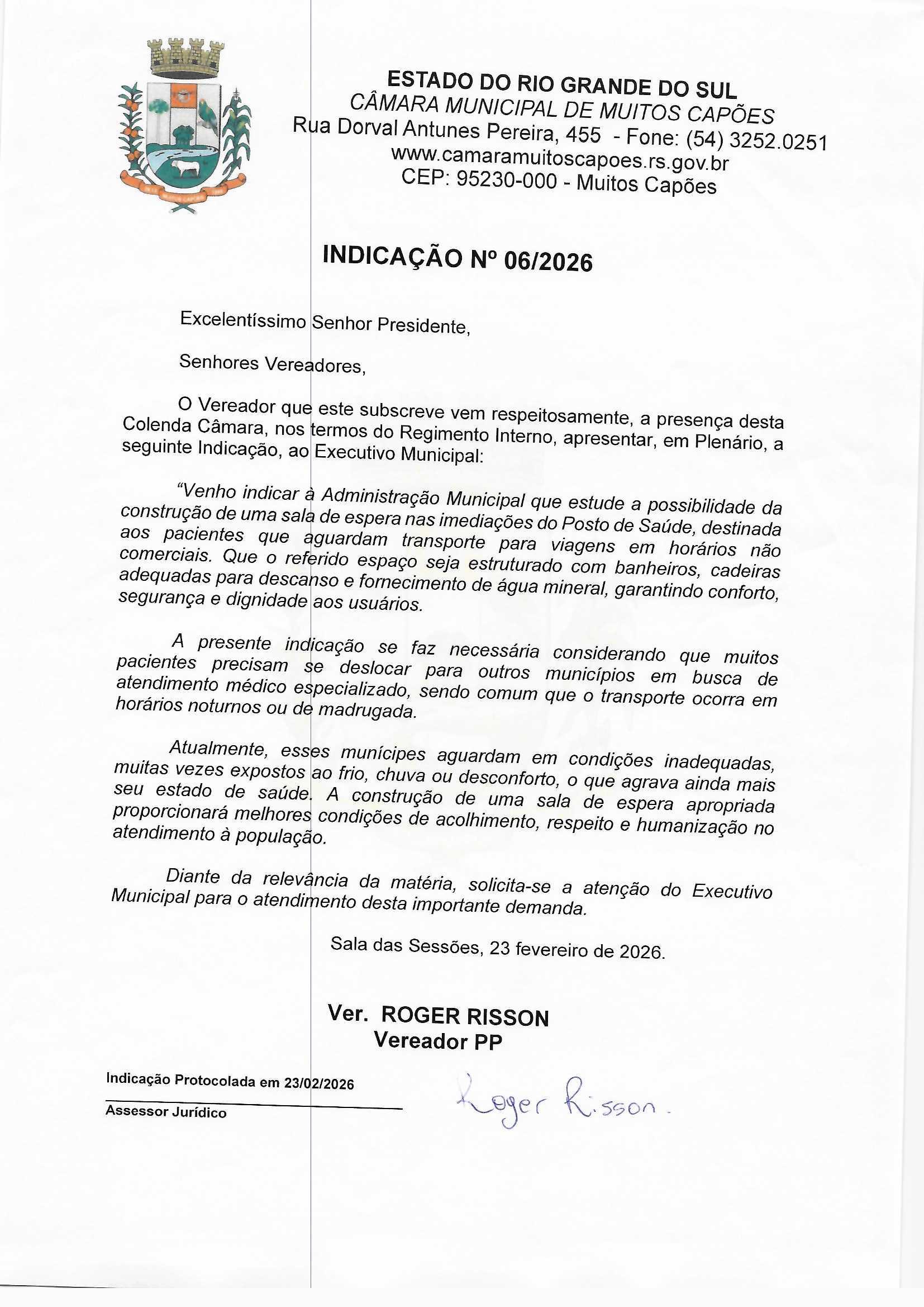 Solicitação: INDICAÇÃO N° 06/2026 Conteúdo: