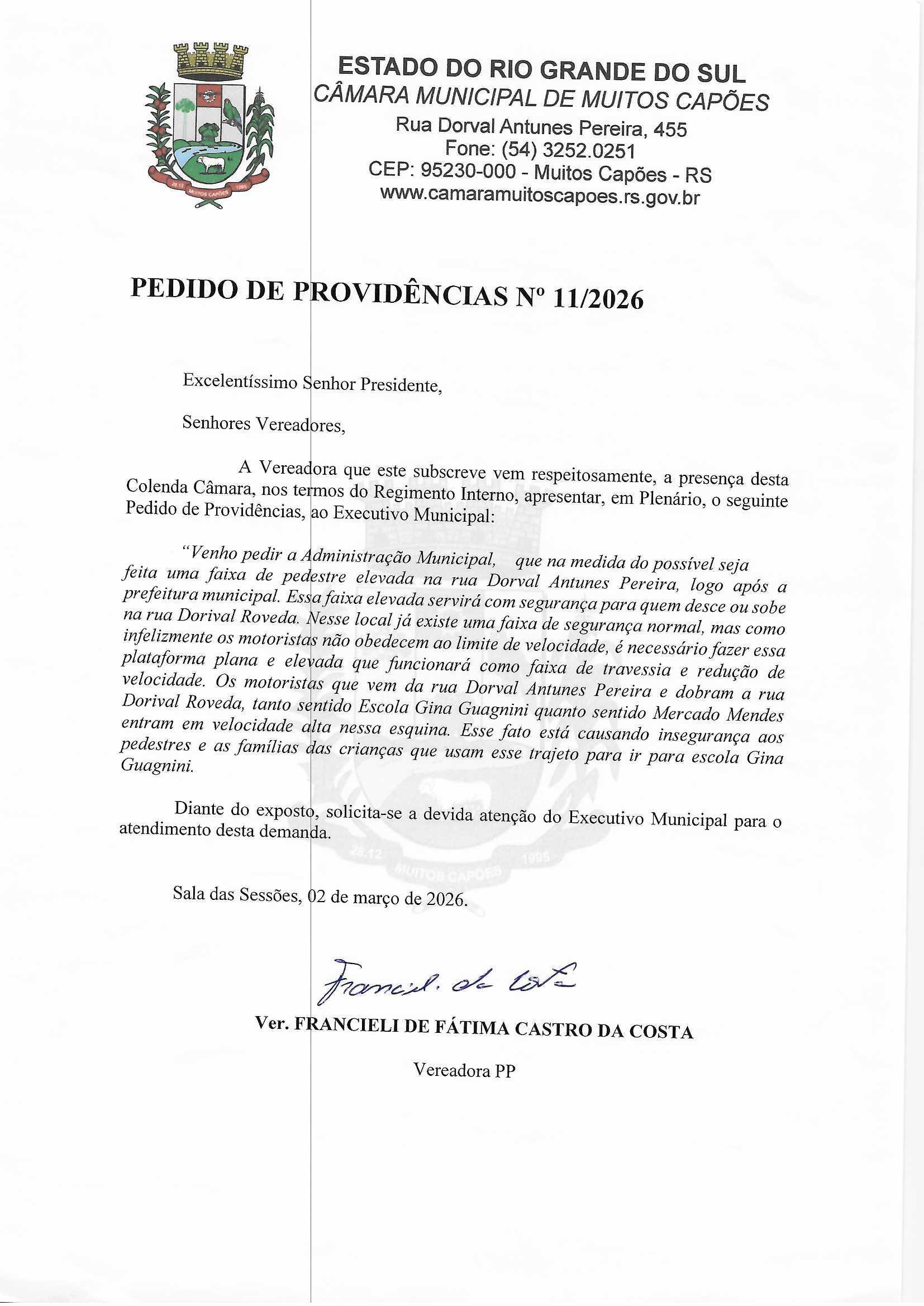 Solicitação: PEDIDO DE PROVIDENCIA N° 11//2026 Conteúdo: