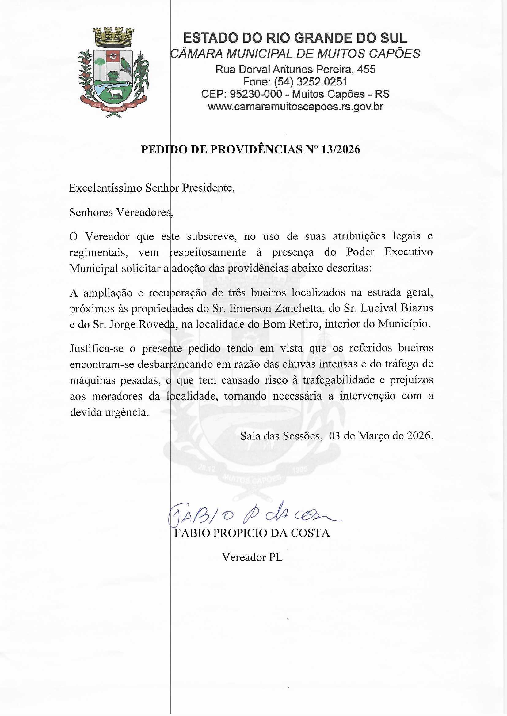 Solicitação: PEDIDO DE PROVIDENCIA N° 13/2026 Conteúdo: