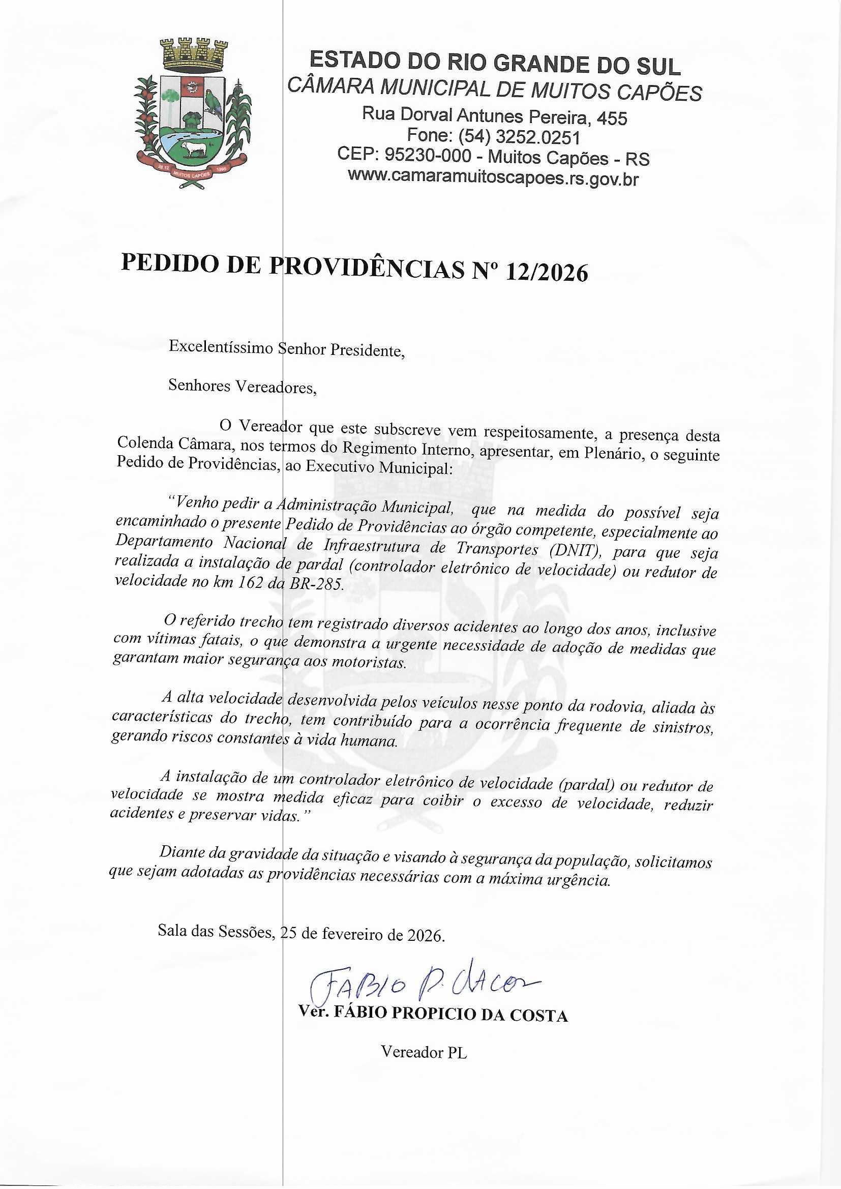 Solicitação: PEDIDO DE PROVIDENCIA N° 12/2026 Conteúdo: