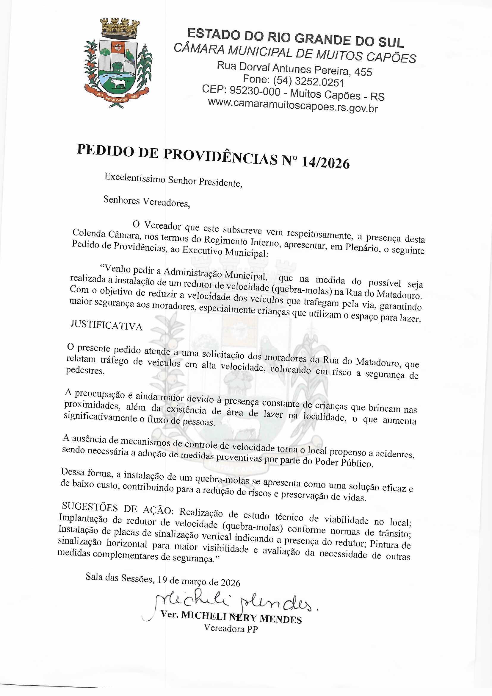 Solicitação: PEDIDO DE PROVIDENCIA N° 14/2026 Conteúdo: